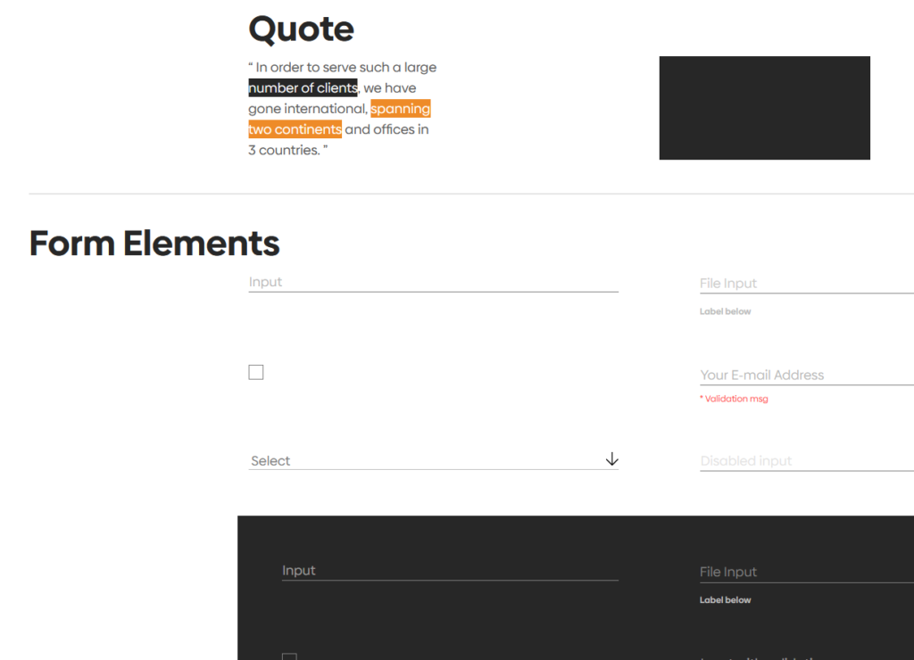 We do the same with our forms, too. We don’t show the “contact” form our “register” form. We show all form elements in all possible backgrounds.