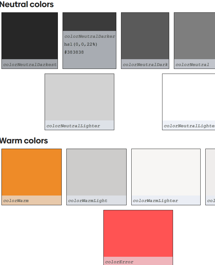 Also, our color palette is not our brand. But our brand is our color palette. We recognize that developers may not remember what colorWarm is. So we created a second level of variables that are comfortable ways for us to describe our brand.